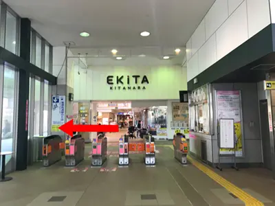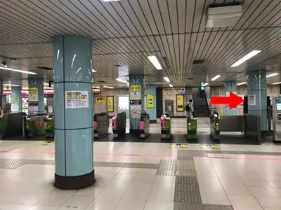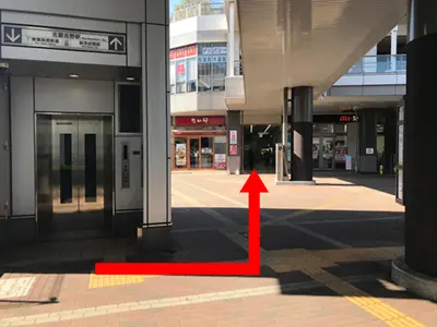 ①改札を出たら右へ