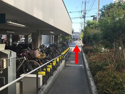 ⑤駐輪場の横を抜けて下さい。